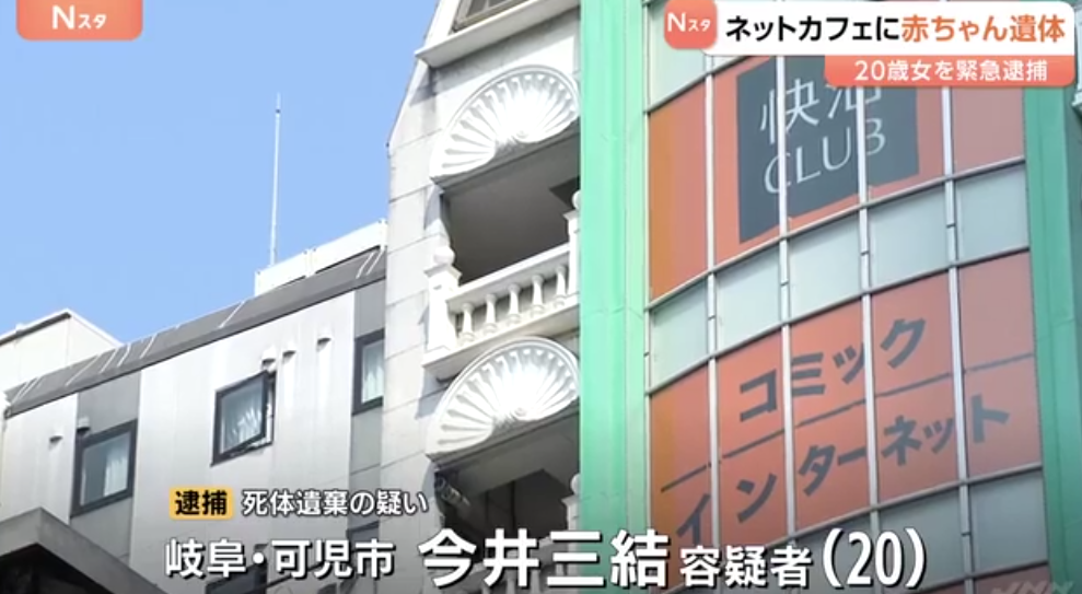 「個室から異臭」ネットカフェで生後まもない赤ちゃんの遺体見つかる その場にいた20歳の女を死体遺棄容疑で逮捕 名古屋市 未分類 2026/03/29 きょう午前7時すぎ、名古屋の繁華街・錦3丁目のネットカフェで、生まれて間もない赤ちゃんの遺体が見つかりました。 「個室から異臭がする」という従業員からの通報で駆けつけた警察官が、その場にいた岐阜県可児市の自称・店員、今井三結容疑者(20)を死体遺棄の疑いで逮捕しました。 今井容疑者は容疑を認めているということで、警察が詳しいいきさつを調べています。